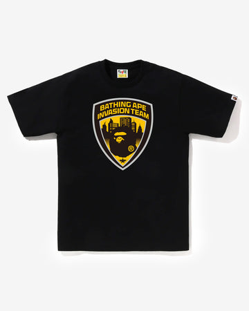 Graphic t-shirt made from cotton jersey. The front features a bold rubber-printed Emblem logo with the BAPE Security theme.