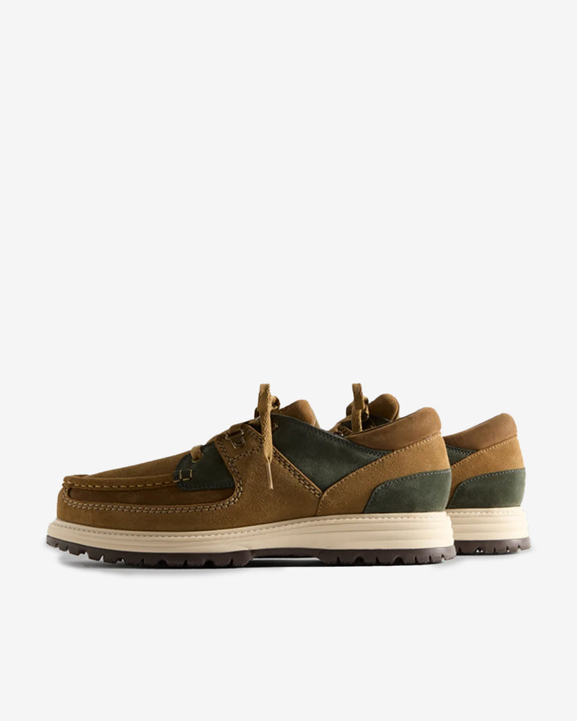 Debuting in Brown/Green, Sunderland takes cues from a classic Clarks '90s design. This rugged moccasin-style shoe features a mix of C.F. Stead suede, leather and butter-soft nubuck, all paired with a cleated rubber outsole for enhanced grip. The look is completed with tonal laces and two additional sets, hiker-inspired flat and round rope styles.
